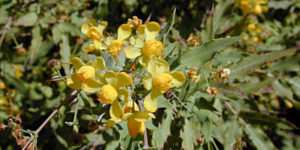 | Bladderpod is one of the easiest California natives to grow in landscape applications. The flowers are beautiful, bright yellow, and stay on the plant most of the year, and attract bees, butterflies and hummingbirds. It is highly fragrant, though the public is divided on whether it is pleasant or unpleasant. Bladderpod is considered a fire retardant plant by the Los Angeles State and County Arboretum’s Fire Retardant Plant Research Project. | A federally endangered species, once common in the Verdugo Mountains, grows berries that are favored by many songbirds. The spiny leaves also add a protective cover. The shrub can grow up to 4’ in height and 6’ in width and is evergreen. (LA County Fire approved) | It’s purple berries and yellow flowers are favored by many songbirds. The spiny leaves also add a protective cover. (LA County Fire approved) |